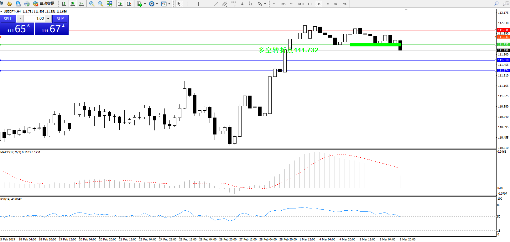 交易策略:111.732下方看跌,目标111.518、111.374