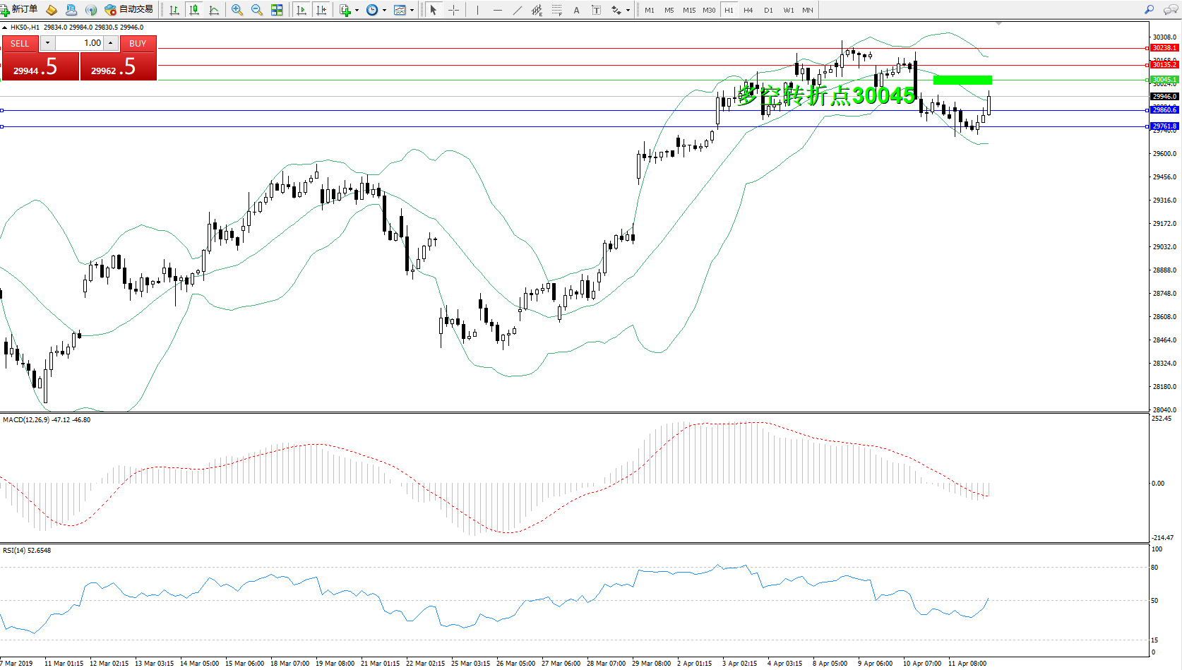 交易策略:30045下方看跌,目标29860、29761