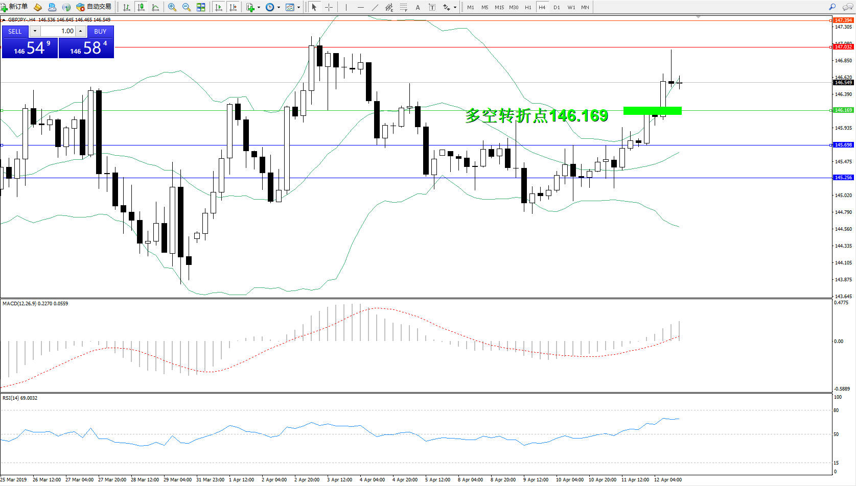 交易策略:146.169上方看涨,目标147.032、147.394