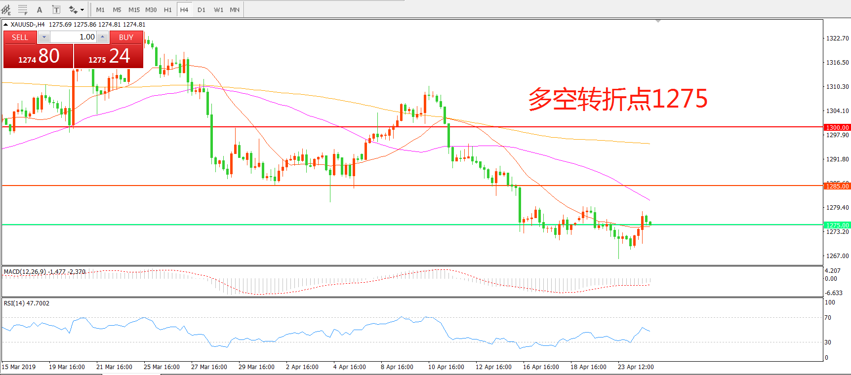 周三(4月24日),美元指数涨势汹汹,短线急升近50点,强势上破98,并刷新2017年5月以来新高至98.18,但金价却在盘跌之后震荡走高,收复了1275关口,最终收报1275.33美元/盎司,而世界银行在其最新的商品展望报告中仍看好2019年的黄金行情。