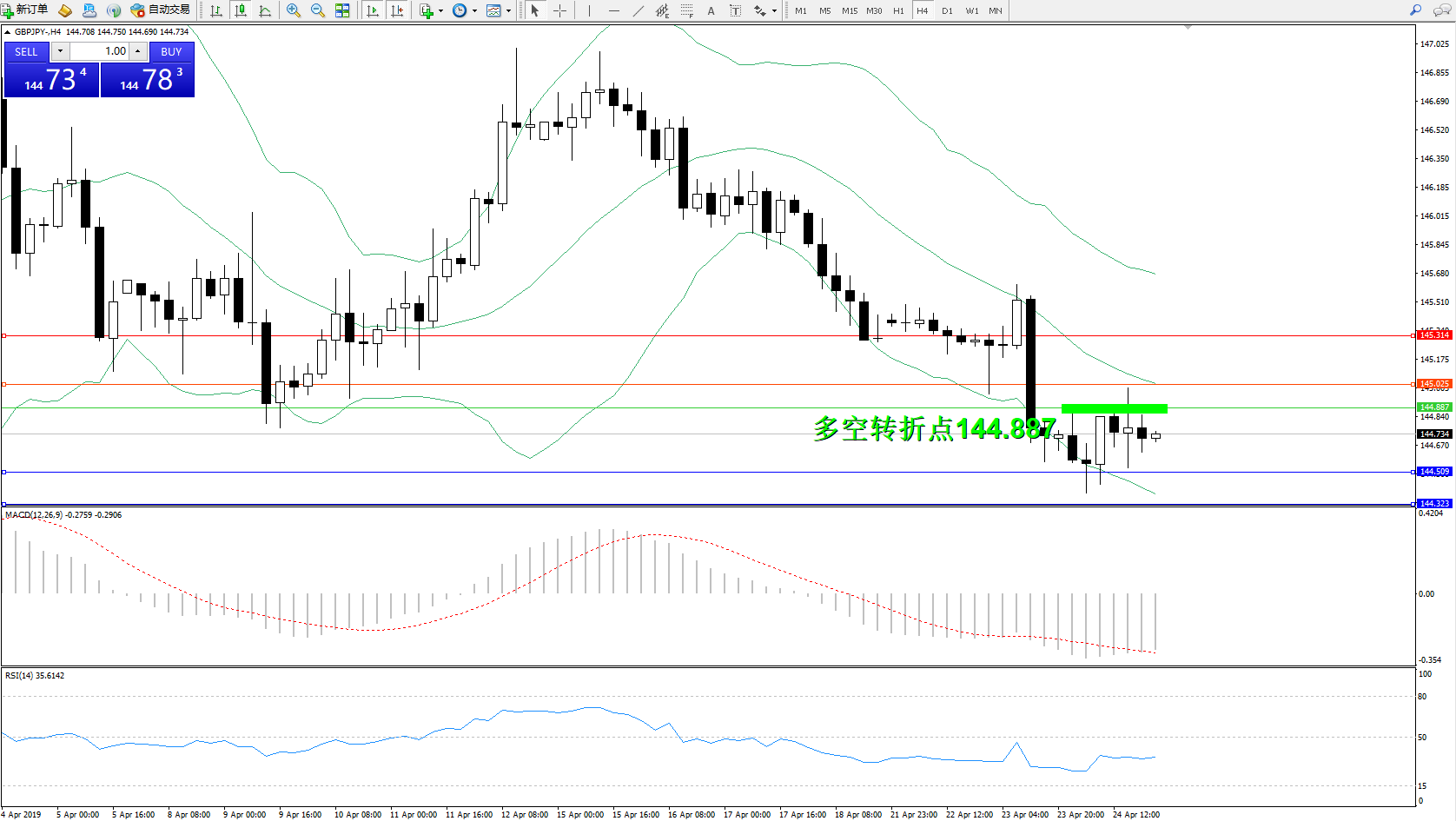 交易策略:144.887下方看跌,目标144.509144.323