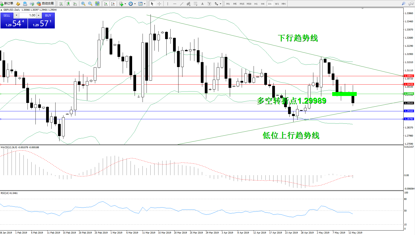 交易策略:1.29989下方看跌,目标1.29160、1.28780