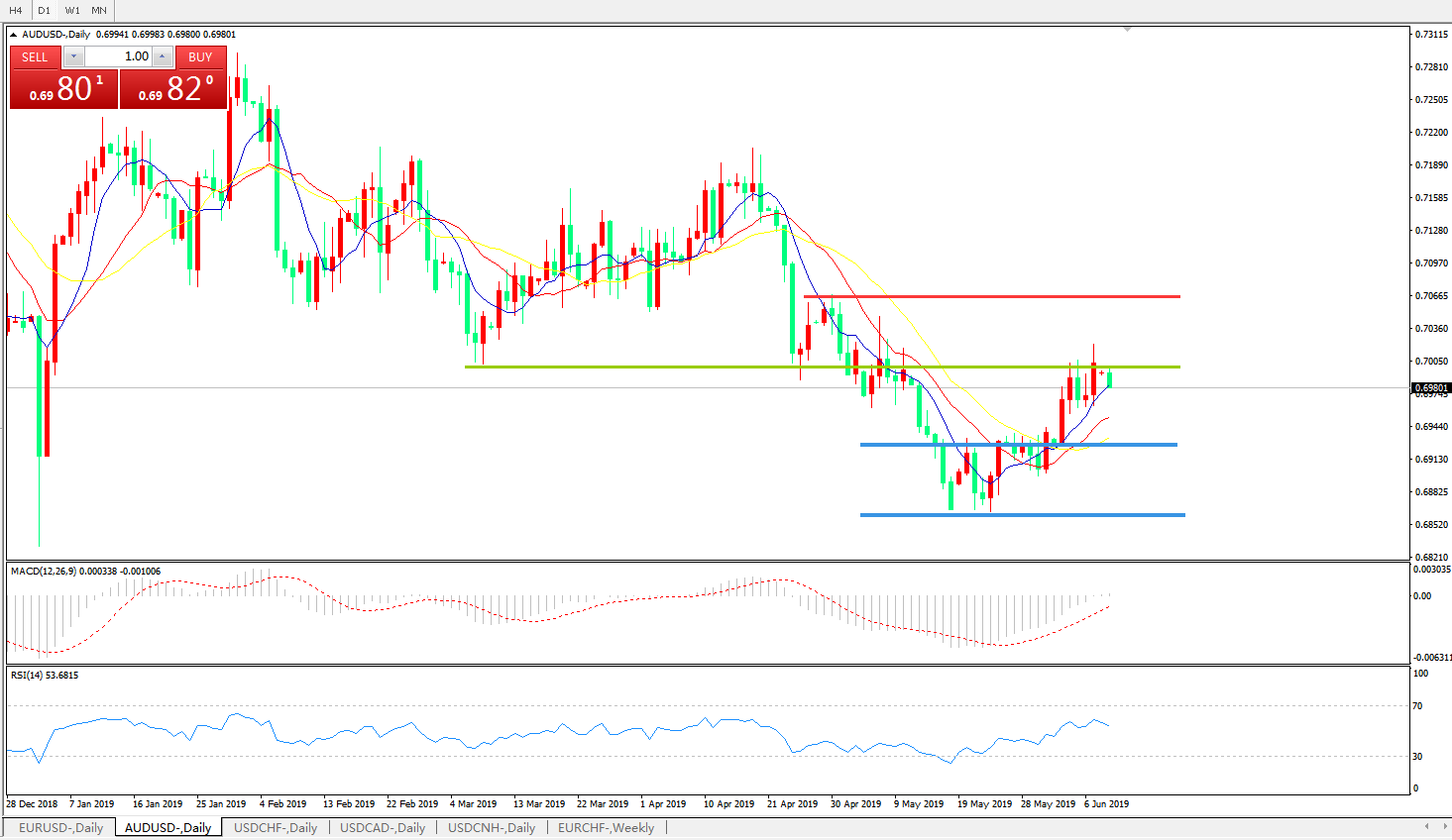 交易策略:0.7000下方看跌,目标0.6900、0.6860