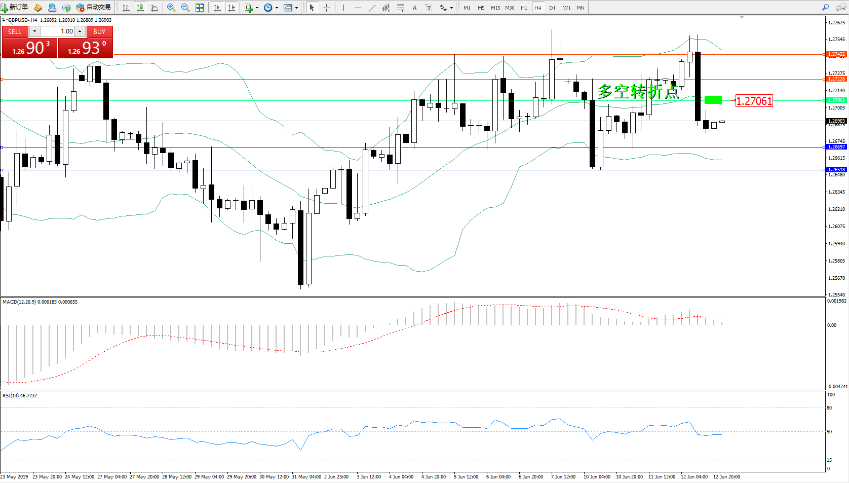 交易策略:1.27061下方看跌,目标1.26697、1.26518