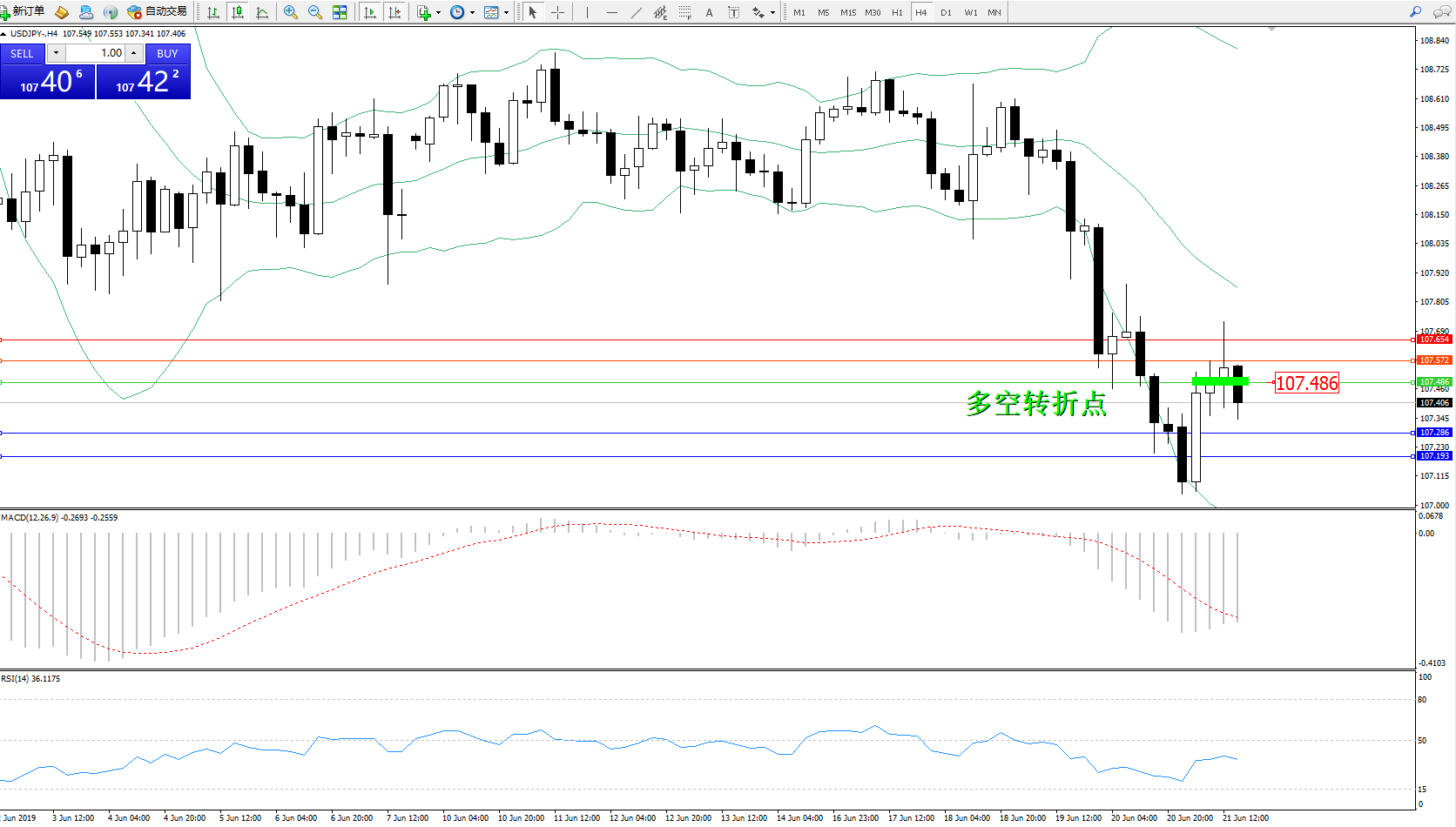 交易策略:107.486下方看跌,目标107.286、107.193