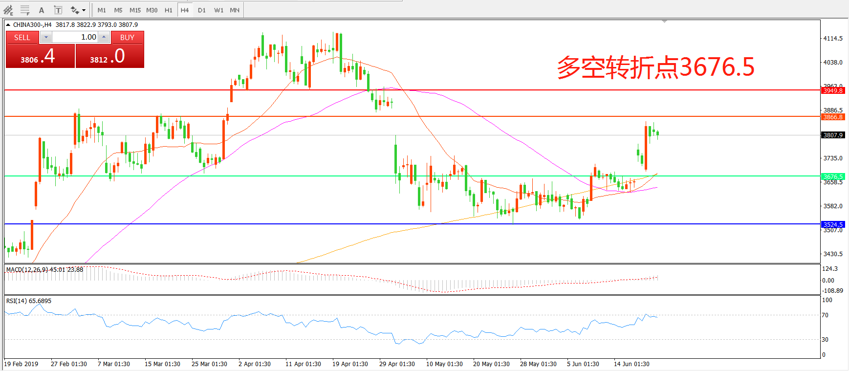 沪深300指数CHINA300 4小时图