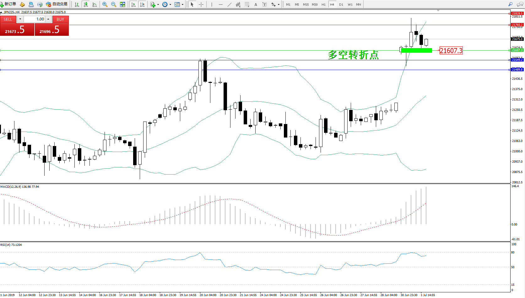 交易策略:21607上方看涨,目标21760、21828