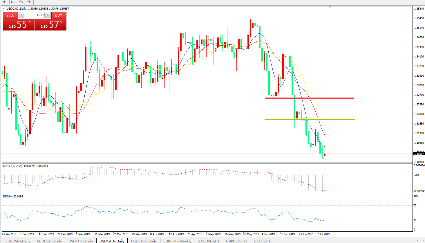 技术面简析:日线图均线有序空头排列,价格遭遇1.30关口有止跌迹象,MACD在0轴下方运行但动能柱略有缩量迹象,RSI超卖区域边缘徘徊,短线汇价存超跌反弹需求,中期汇价或进一步走低。