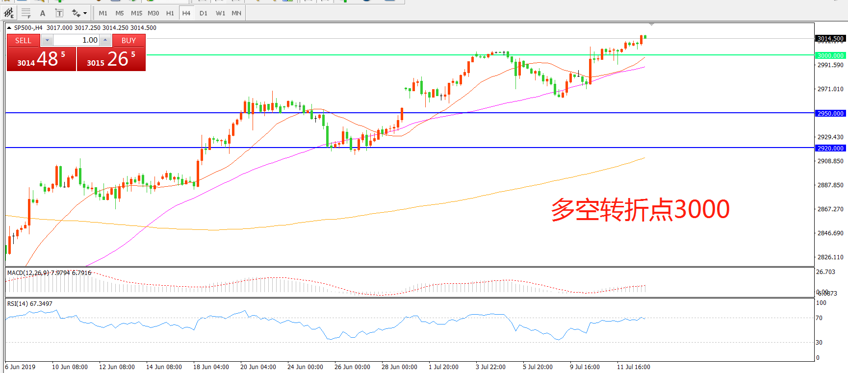 交易策略:在3000.00之上看涨,目标3020.00 3050.00