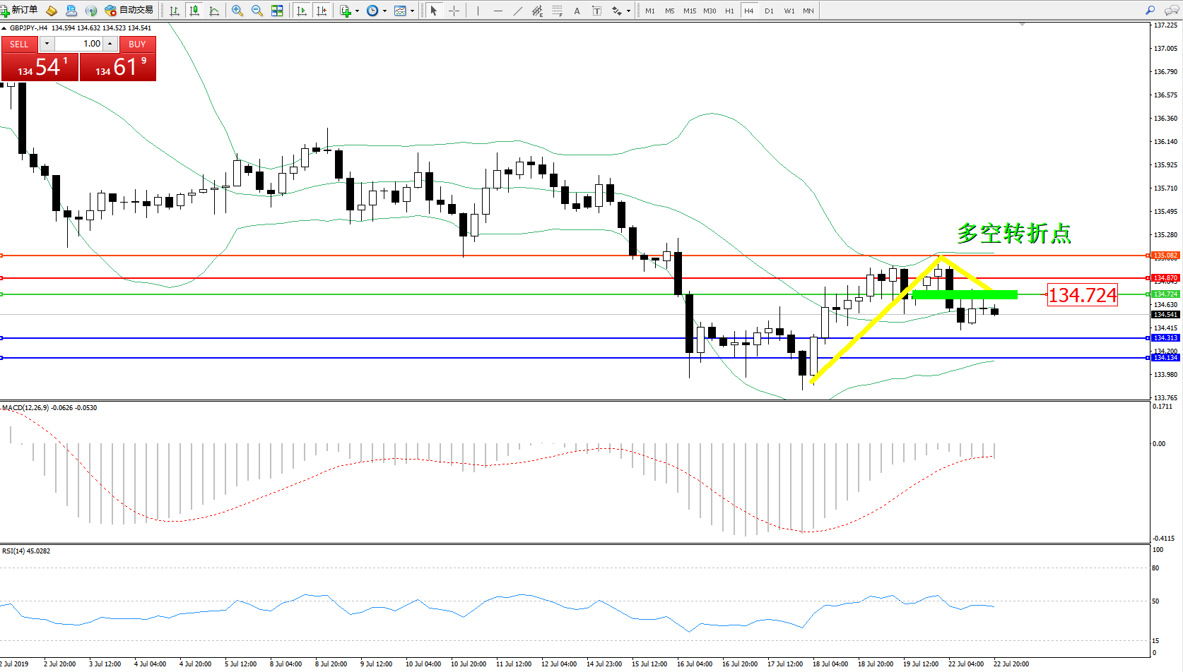 交易策略:134.724下方看跌,目标134.313134.134