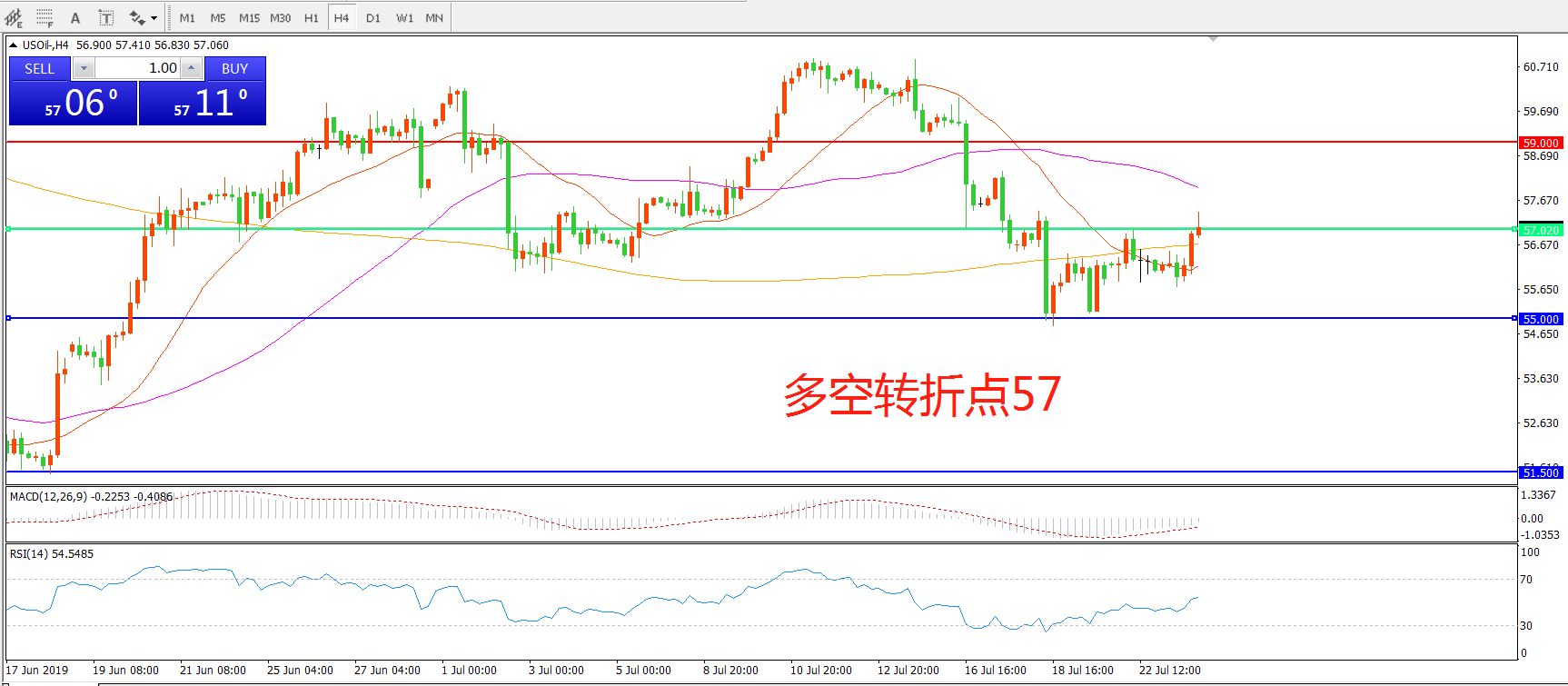 多空转折点:57.00