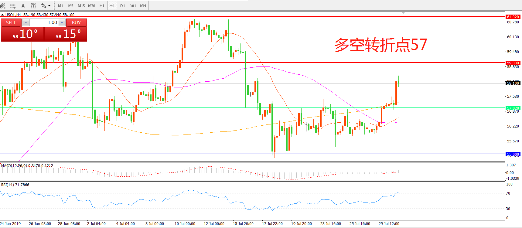 多空转折点:57.00