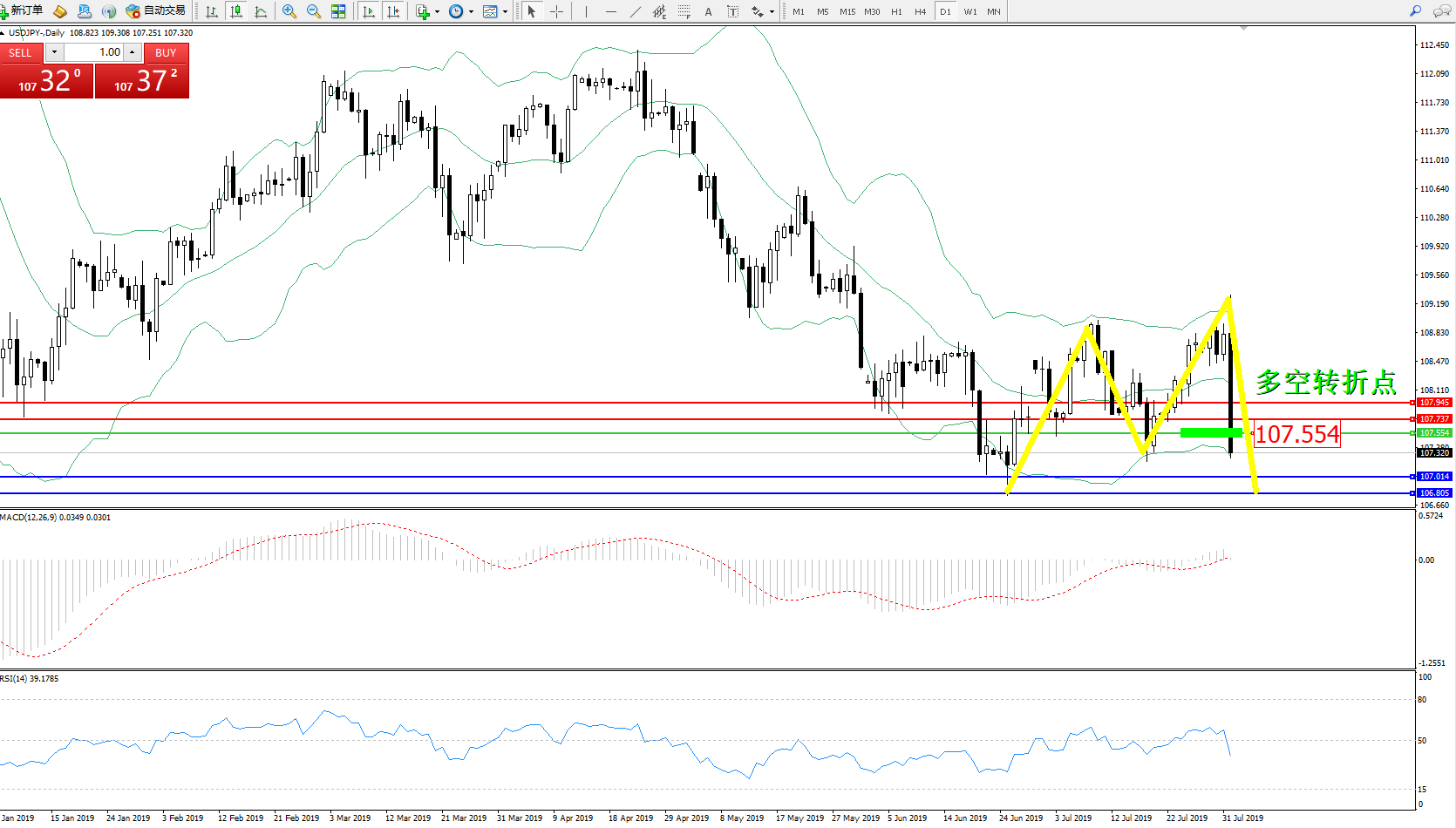 美元兑日元高位回落80点至108.5,亚洲时段一度升破109大关,因鲍威尔警告不要期望一个长期的货币宽松周期,但随后避险需求有所上升,全球股市面临新下跌风险,日元由跌转升势。日韩贸易摩擦之际,日本7月制造业产出连续第七个月下滑,降幅为3月以来最大。此外,日本央行表示,若日本央行选择放松政策,降息、增加购债和加快基本货币扩张都在选项中,并且不计划让市场提前消化日本央行宽松措施。