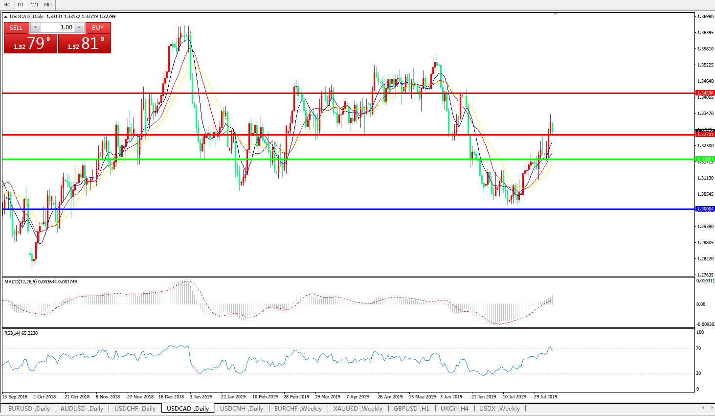 美元兑加元USDCAD    日线图:
