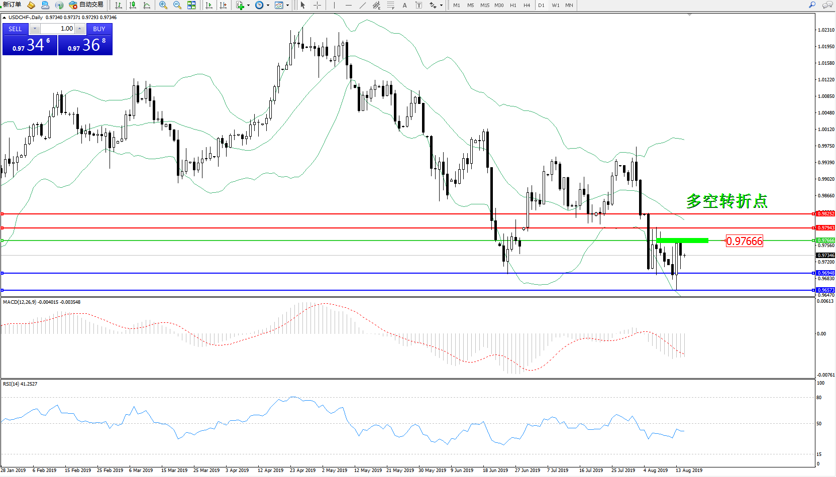 交易策略:0.97666下方看跌,目标0.96948、0.96573