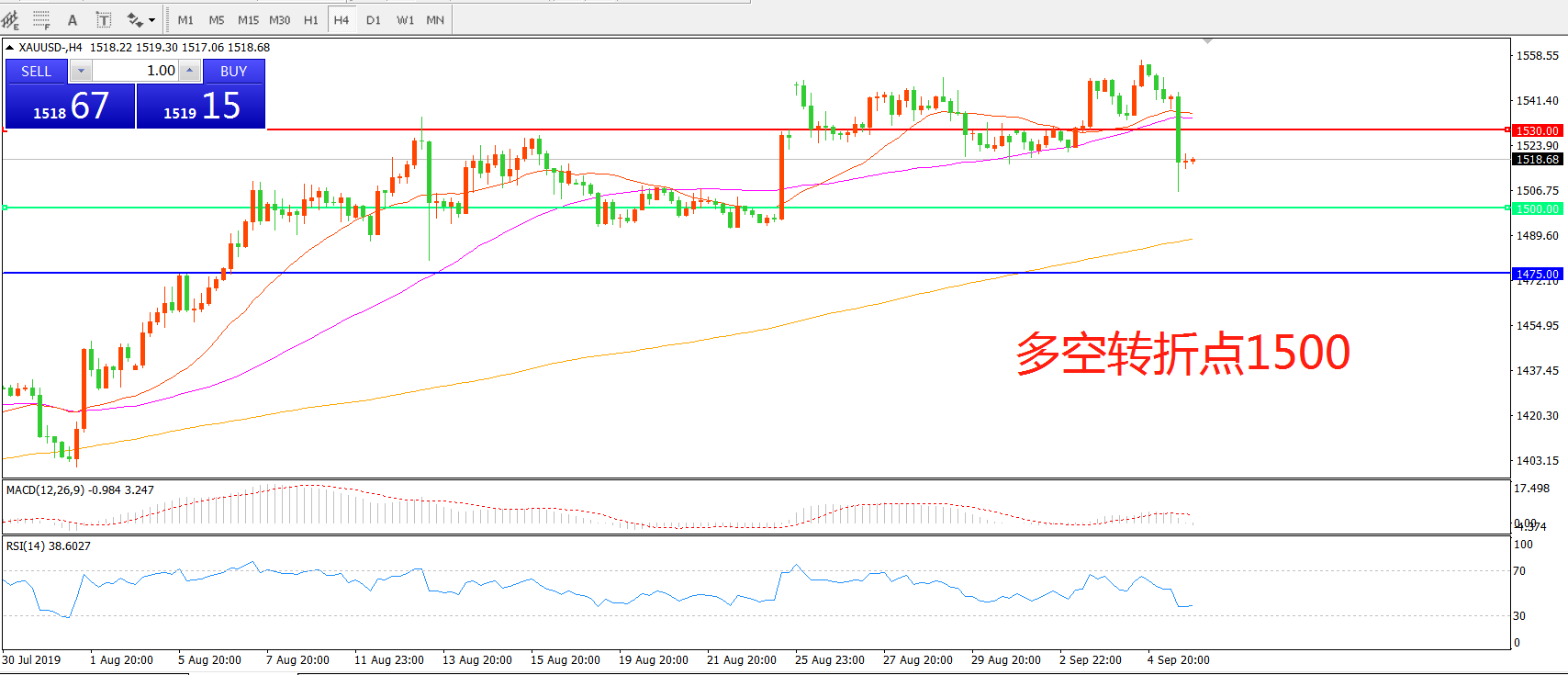 多空转折点:1500.00