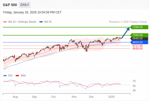 S&P 500 短线: 在6823.00之上,看涨。