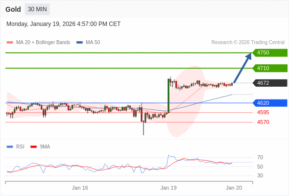 交易策略: 在 4620 之上,看涨,目标价位为 4710 ,然后为 4750 。