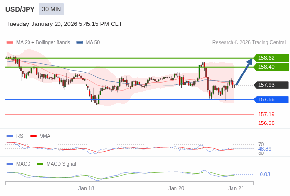 替代方案: 在157.56以下,期待157.19和156.96。