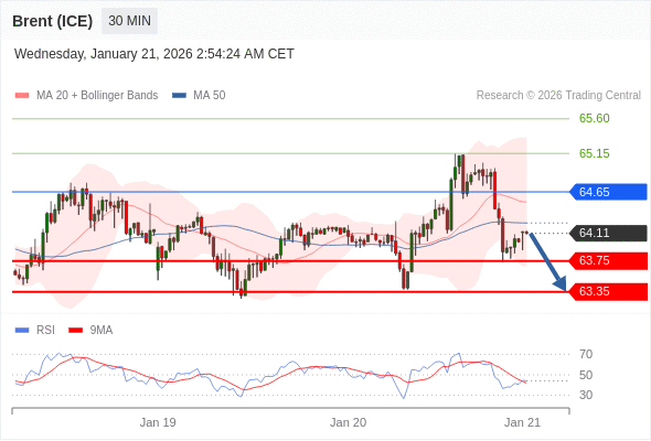 在 64.65 之下,看跌,目标价位为 63.75 ,然后为 63.35 。