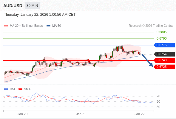 在 0.6775 之下,看跌,目标价位为 0.6740 ,然后为 0.6725 。