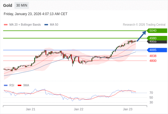 在 4885 之上,看涨,目标价位为 4980 ,然后为 5040 。
