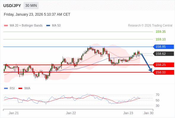 在 158.85 之下,看跌,目标价位为 158.25 ,然后为 158.00 。