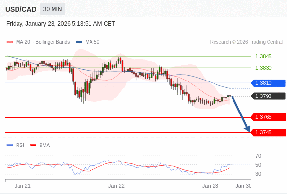 在 1.3810 之下,看跌,目标价位为 1.3765 ,然后为 1.3745 。