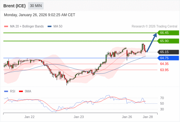 在 64.75 之上,看涨,目标价位为 65.90 ,然后为 66.45 。