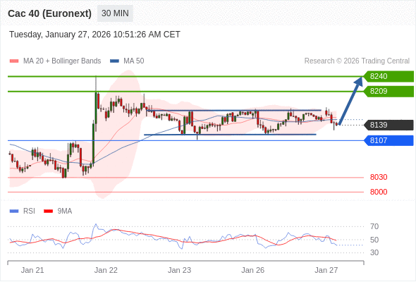 在 8107 之上,看涨,目标价位为 8209 ,然后为 8240 。