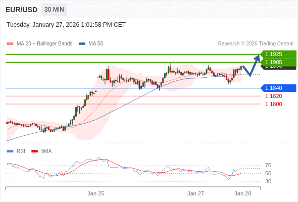 交易策略: 在 1.1840 之上,看涨,目标价位为 1.1905 ,然后为 1.1925 。