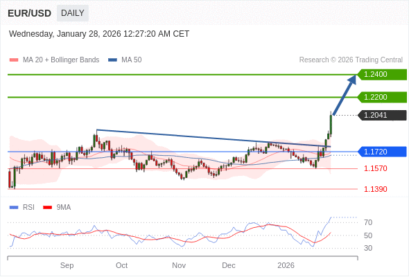 在 1.1720 之上,看涨,目标价位为 1.2200 ,然后为 1.2400 。
