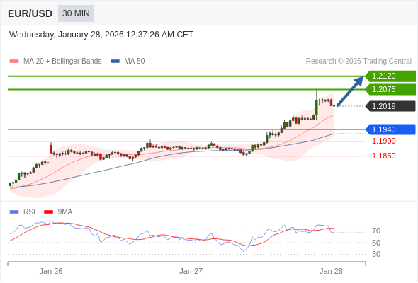 交易策略: 在 1.1940 之上,看涨,目标价位为 1.2075 ,然后为 1.2120 。