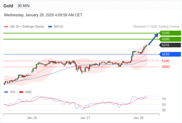 在 5155 之上,看涨,目标价位为 5280 ,然后为 5330 。