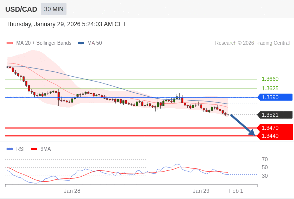 在 1.3590 之下,看跌,目标价位为 1.3470 ,然后为 1.3440 。