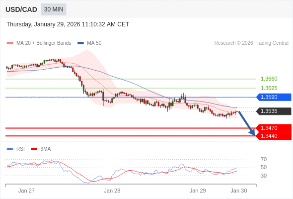 在 1.3590 之下,看跌,目标价位为 1.3470 ,然后为 1.3440 。