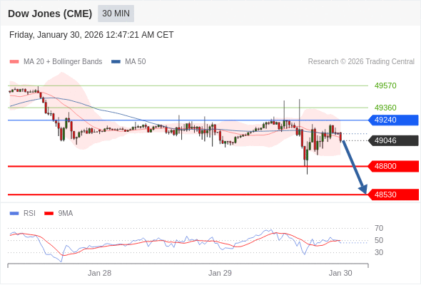 交易策略: 在 49240 之下,看跌,目标价位为 48800 ,然后为 48530 。