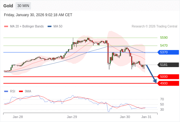 在 5370 之下,看跌,目标价位为 5000 ,然后为 4900 。