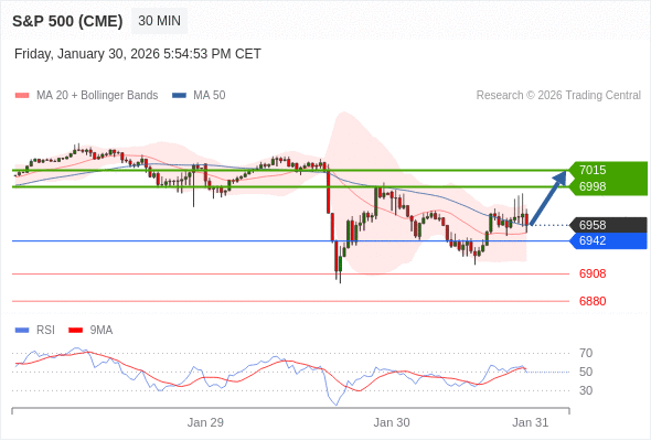 在 6942 之上,看涨,目标价位为 6998 ,然后为 7015 。