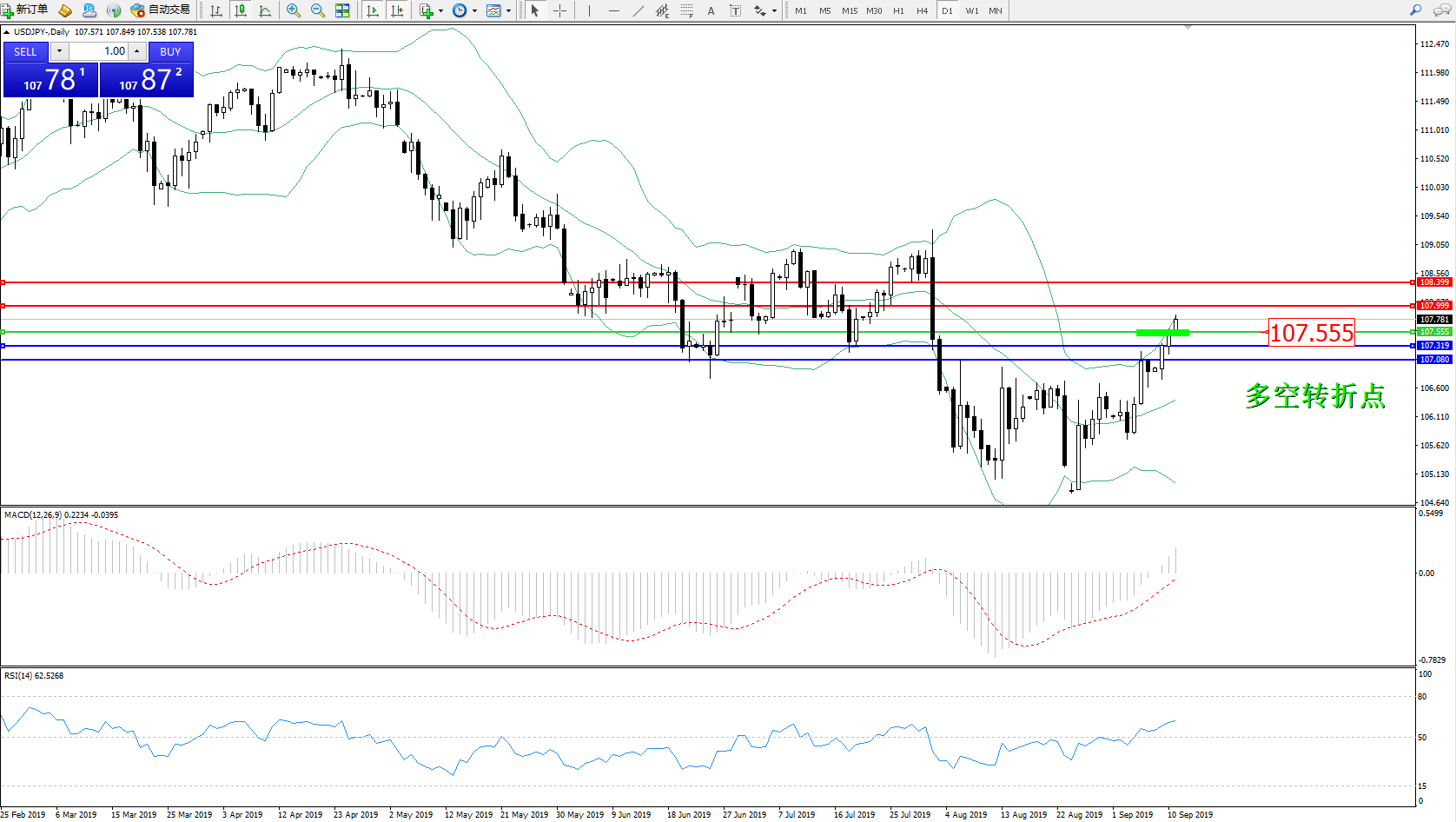 美元兑日元延续升势,创近六周新高至107.85附近,近期风险偏好情绪持续回升,令避险日元吸引力下降,美债收益率创一个月新高,而美元指数创一周新高。此外,近期贸易局势的进展及中国数据的好转也提振了全球股市,而美银美林表示,日本5年期债券标售吸引的需求有限,因近期海外债市收益率上涨和日元下跌,加剧了日本央行下周不必加码宽松货币政策的预期。