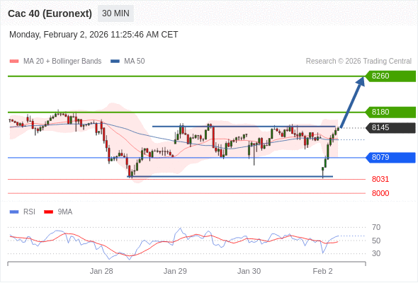 在 8079 之上,看涨,目标价位为 8180 ,然后为 8260 。