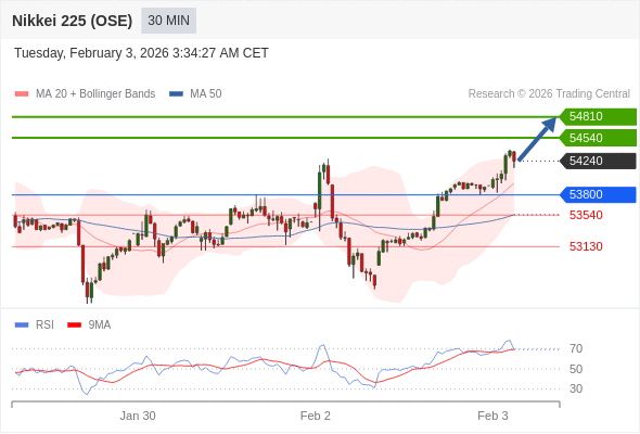 在 53800 之上,看涨,目标价位为 54540 ,然后为 54810 。