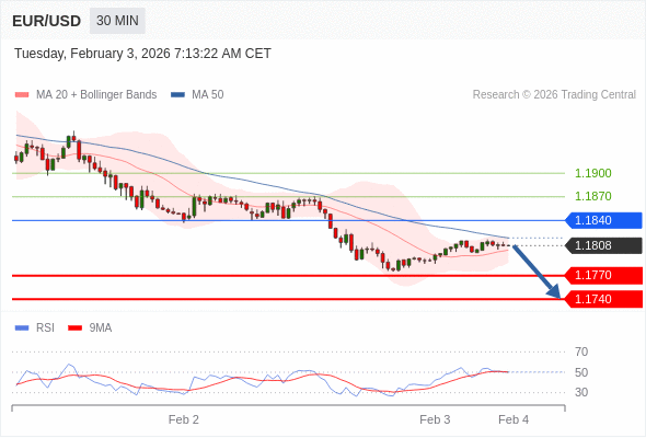 交易策略: 在 1.1840 之下,看跌,目标价位为 1.1770 ,然后为 1.1740 。