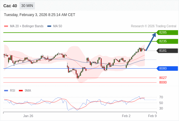 在 8080 之上,看涨,目标价位为 8235 ,然后为 8285 。