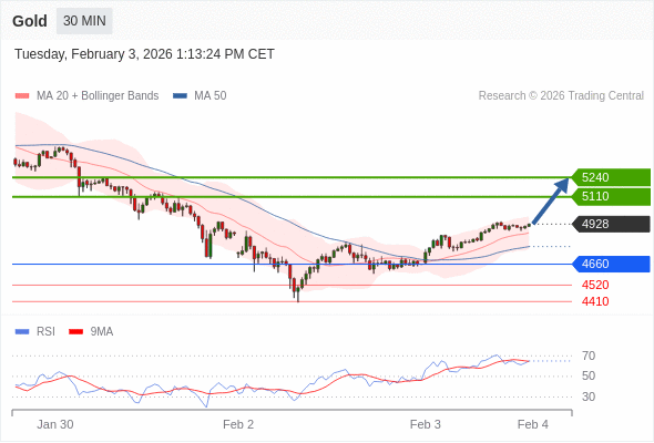 在 4660 之上,看涨,目标价位为 5110 ,然后为 5240 。