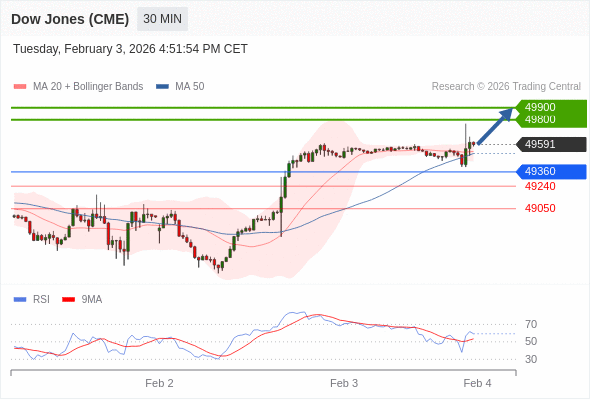 在 49360 之上,看涨,目标价位为 49800 ,然后为 49900 。