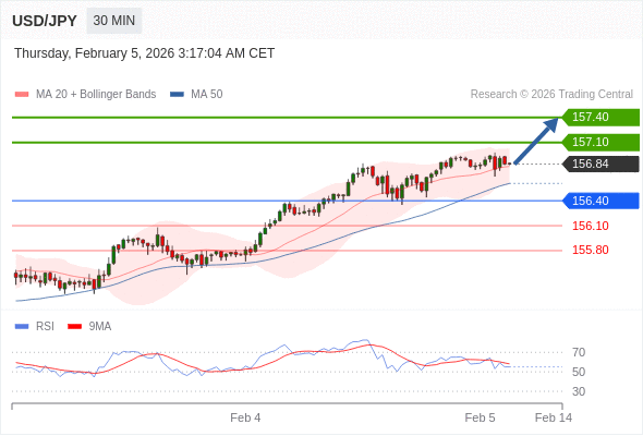 在 156.40 之上,看涨,目标价位为 157.10 ,然后为 157.40 。