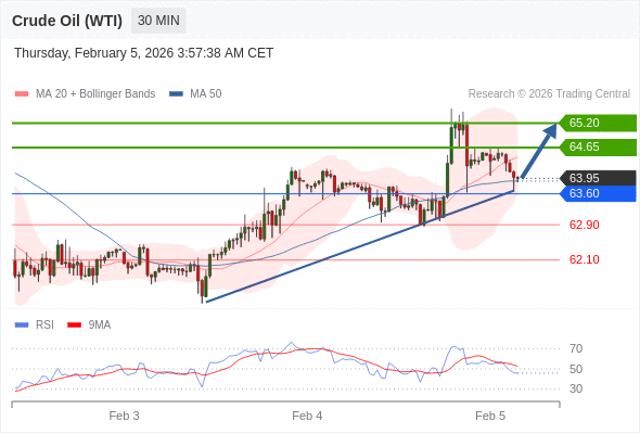 在 63.60 之上,看涨,目标价位为 64.65 ,然后为 65.20 。