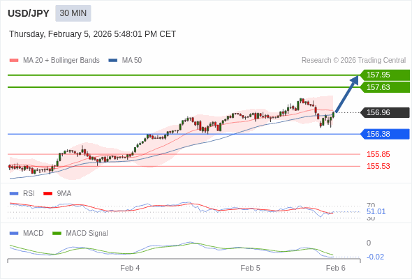 美元/日元 当日内 : 调整至 156.38 处,在反弹上升之前。