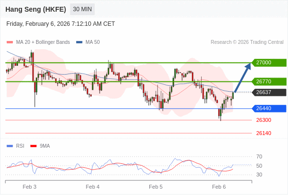 在 26440 之上,看涨,目标价位为 26770 ,然后为 27000 。